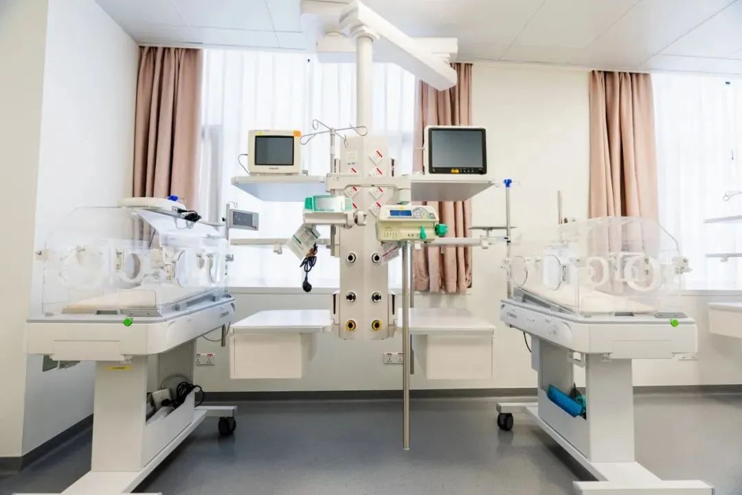 The NICU features eight neonatal monitoring beds equipped with a full suite of advanced medical devices, including multi-functional 24-hour continuous monitors, neonatal ventilators for respiratory support, incubators to promote the development in a controlled temperature environment, and advanced phototherapy units to treat neonatal jaundice.