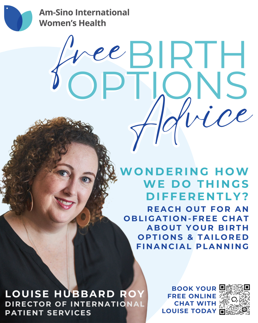 For the best rates and tailored financial planning, contact Louise Hubbard Roy, Director of International Patient Services, for an obligation‑free online chat today.